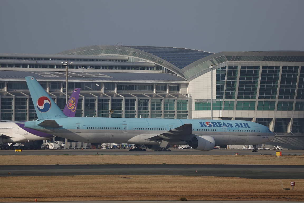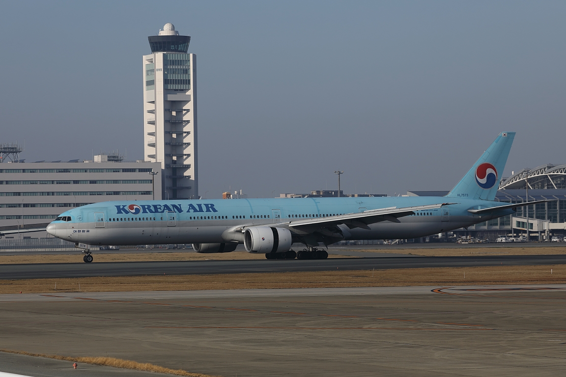 KAL777-300 2026-1-18 飛行機 X Facebook はてブ LINE 2026.01.18 朝から福岡空港で撮影。多少黄砂が飛来するという予報どおり、終始霞んでいました。 大韓航空はボーイング777-300(非ER)のHL7573が飛来しました。調べてみると2000年から飛んでいる機体のようです。 私は午前中いっぱいいましたが、他の会社も含めて、777はこれだけしかやってきませんでした。