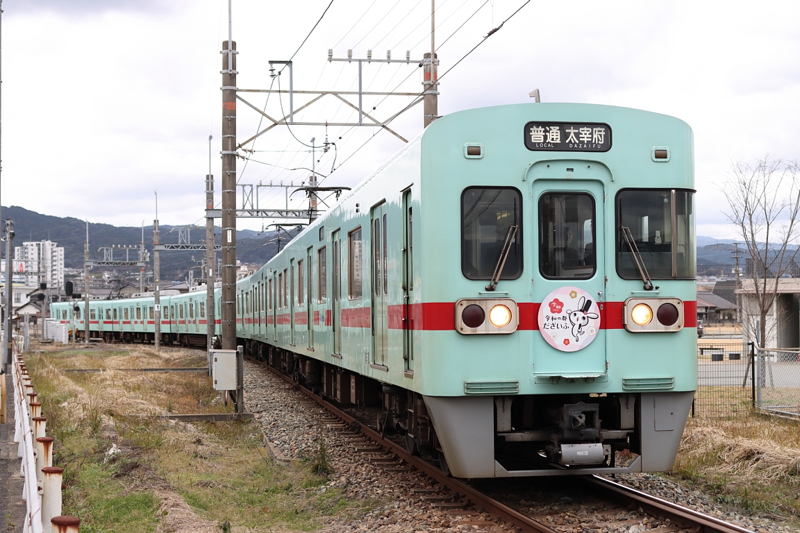 5000形の居なかった太宰府線 2026-1-1~2026-1-3 西鉄5000形 X Facebook はてブ LINE 2026.01.21 2026年の年始は例年通り太宰府線等の撮影に出かけました。 太宰府線へは1月1日と3日に出かけましたが、今年は5000形と出会えませんでした。昨年は線内往復している運用には入っていましたが…。 9000形、7000形+6000形、6000形が走っていました。 線内往復していた9000形は飲酒運転撲滅ヘッドマークがついていました。 1月2日は天神大牟田線の撮影をしましたが、こちらでは5000形を見ることができました。 年々5000形は減っていくのでしょうが、今年も記録に残さねばと思いました。